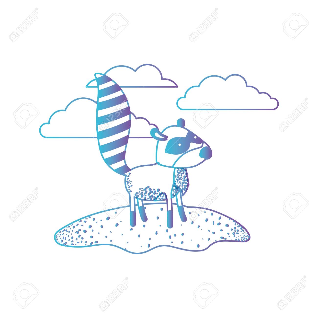 Raccoon Cartoon In Outdoor Scene With Clouds In Degraded Blue