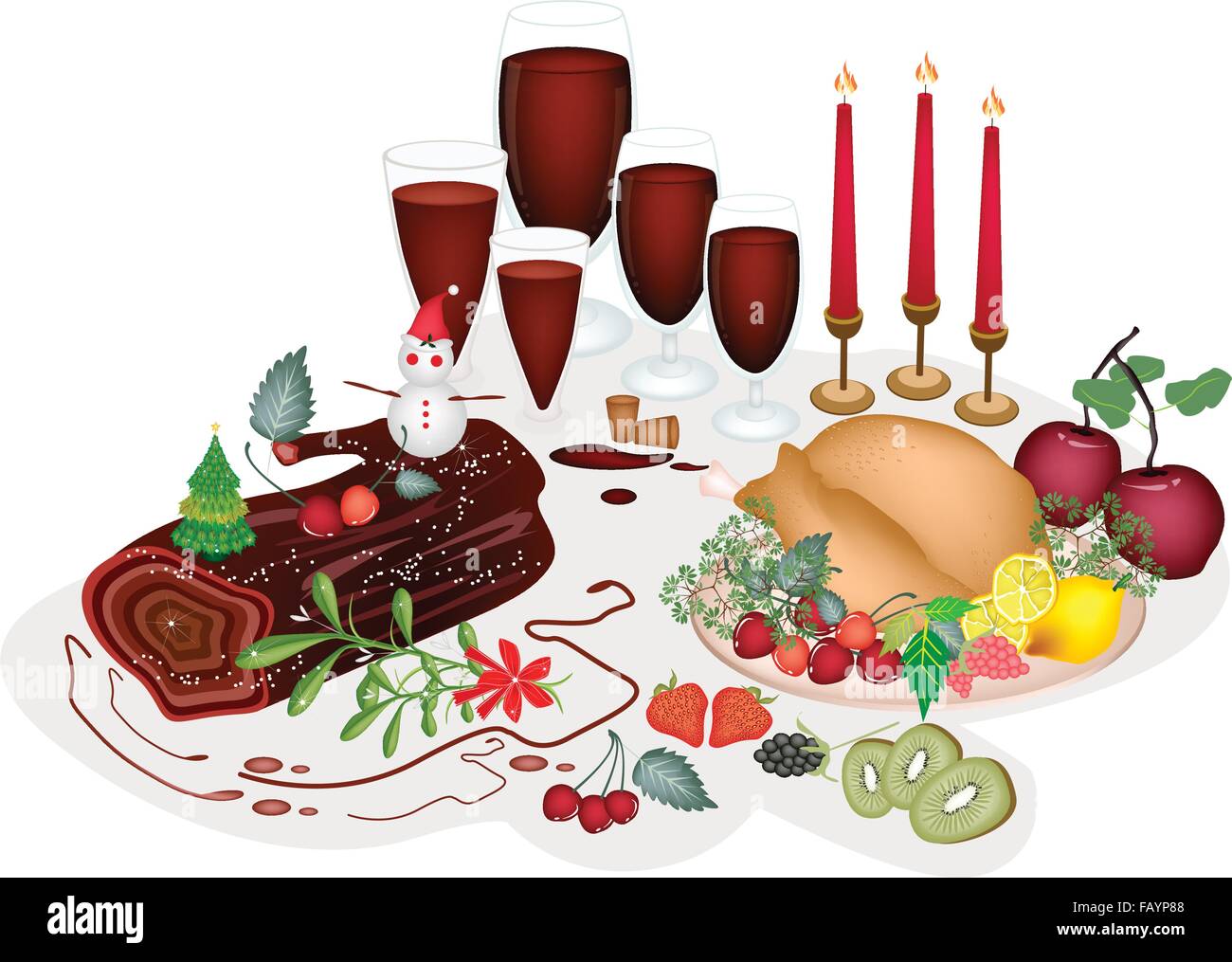 Clipart Of A Yule Log Dessert Garnished With Holly Royalty Free