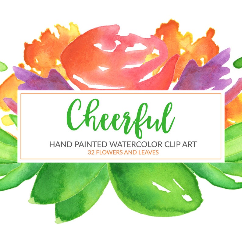 Floral Clipart Cheerful Floral Watercolor Clip Art Etsy